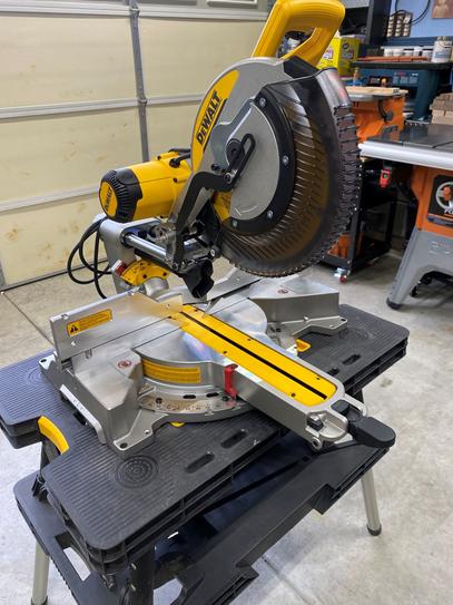Dewalt s dwx726 miter saw stand can hold up to 300 pounds of material. It is the only one on this list to have rolling wheels on the bottom. One time assembly and pneumatic assisted raising and lowering for quick and easy set up. Wide adjustable work supports provide up to 8 of material support.